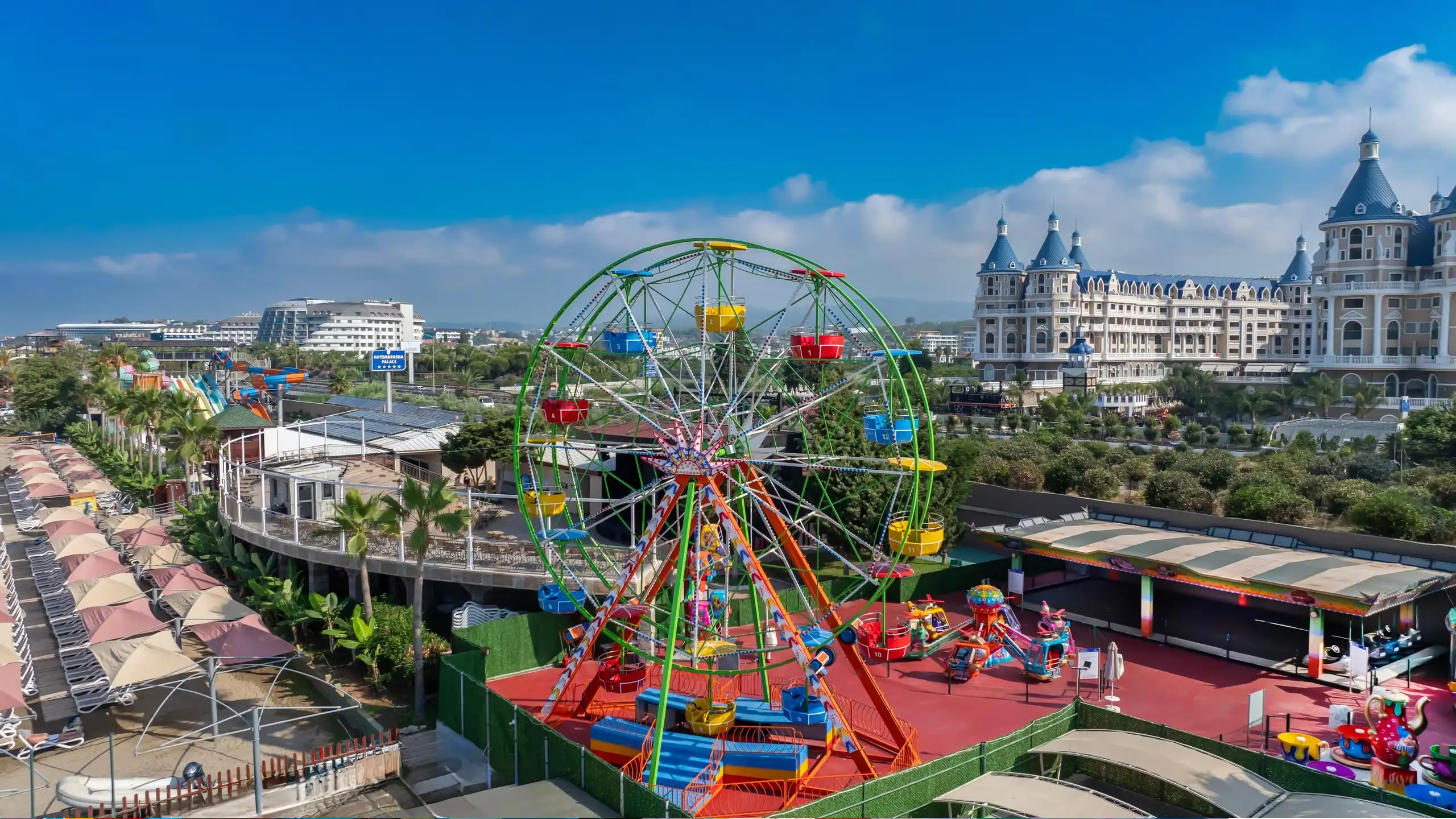 Yetişkin misafirler için 9 adet su kaydırağı olan ana aquapark, çocuk misafirler için 5 adet kaydıraklı aquapark, çocuklara özel Wet Bubble, bebeklere özel bebek havuzu, ana havuz, yetişkinler için sonsuzluk havuzu ve yarı olimpik kapalı havuz bulunuyor.