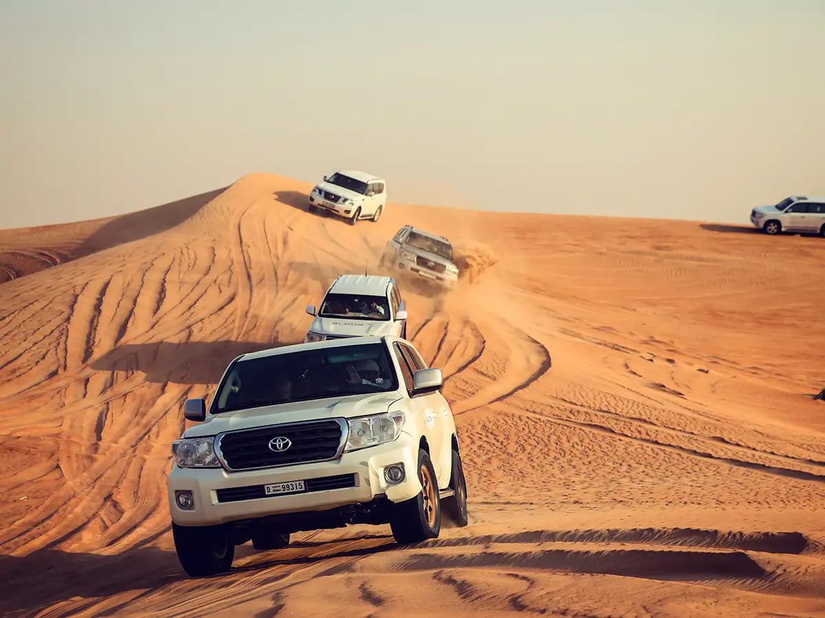 4x4 araçlar ile alınarak, çölde unutulmaz anlar yaşayabilir, gün batımını
